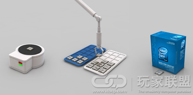 處理器:至此就得到完整的處理器了(這里是一顆Core i7)。這種在世界上最干凈的房間里制造出來的最復(fù)雜的產(chǎn)品實際上是經(jīng)過數(shù)百個步驟得來的,這里只是展示了其中的一些關(guān)鍵步驟。